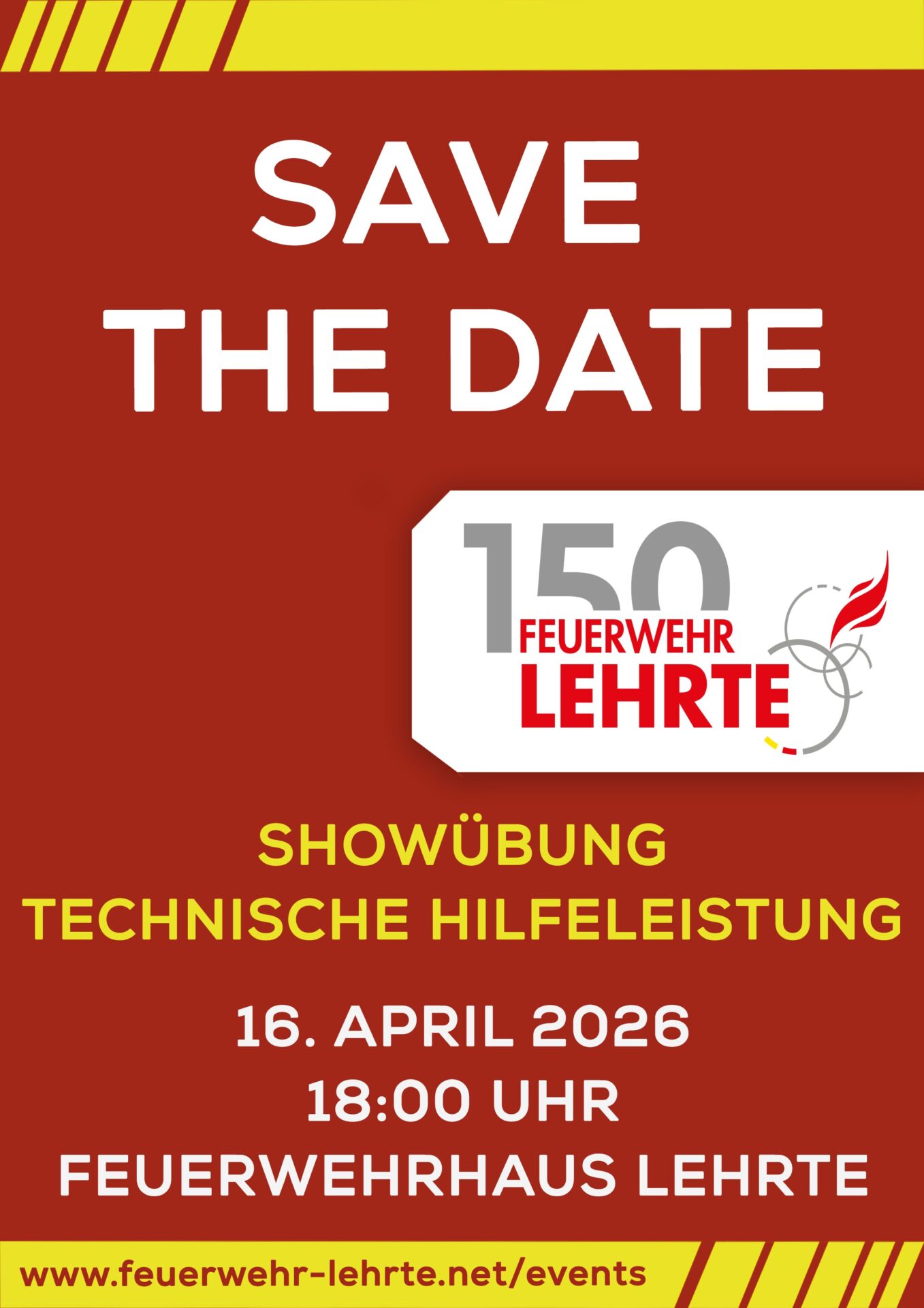 Im Rahmen unseres Jubiläums lädt die Feuerwehr Lehrte herzlich zu einer besonderen Vorführung ein. Am 16. April um 18:00 Uhr findet auf dem Gelände der Feuerwehr Lehrte eine Showübung zum Thema Technische Hilfeleistung – Unfallrettung statt.