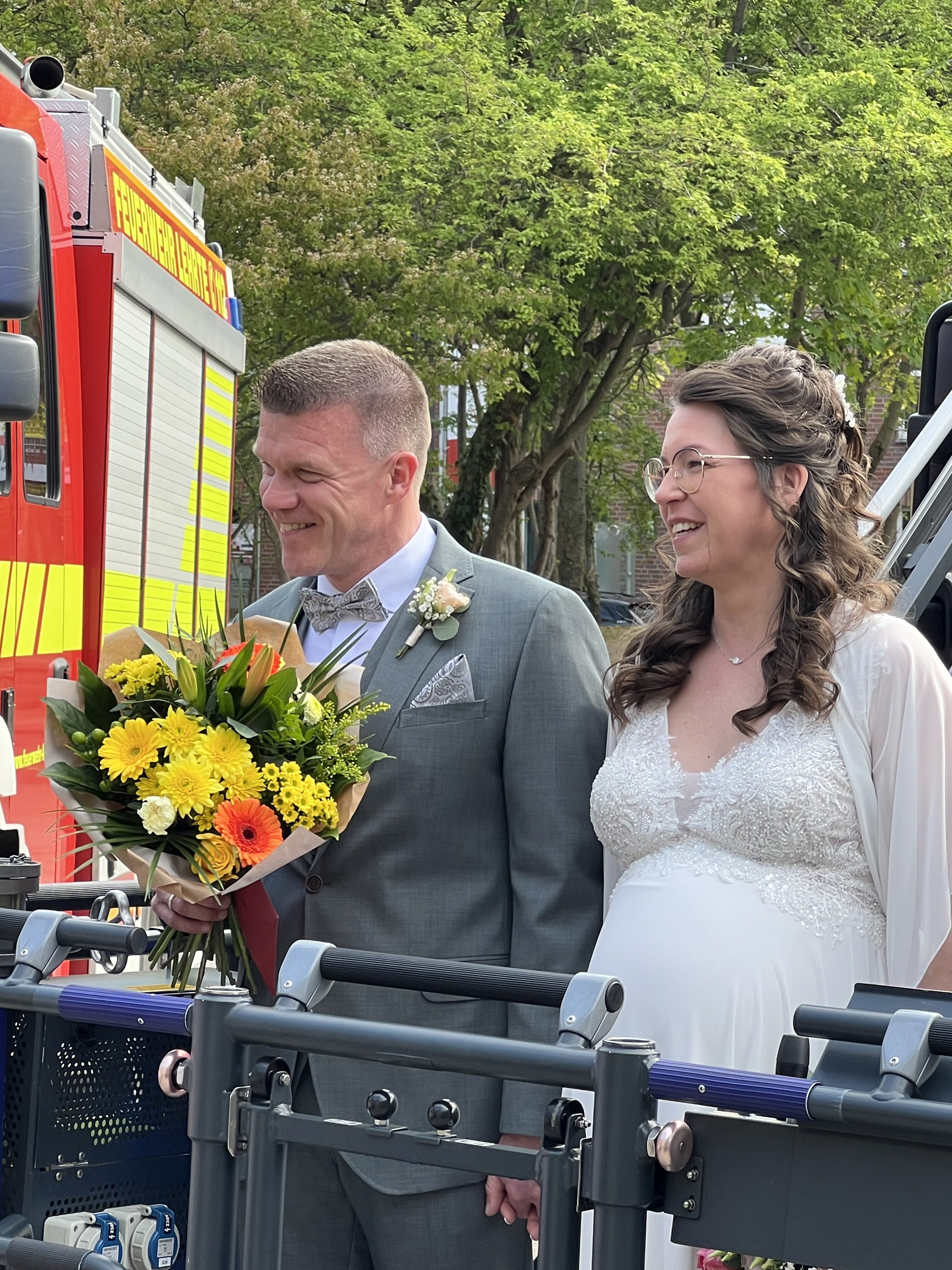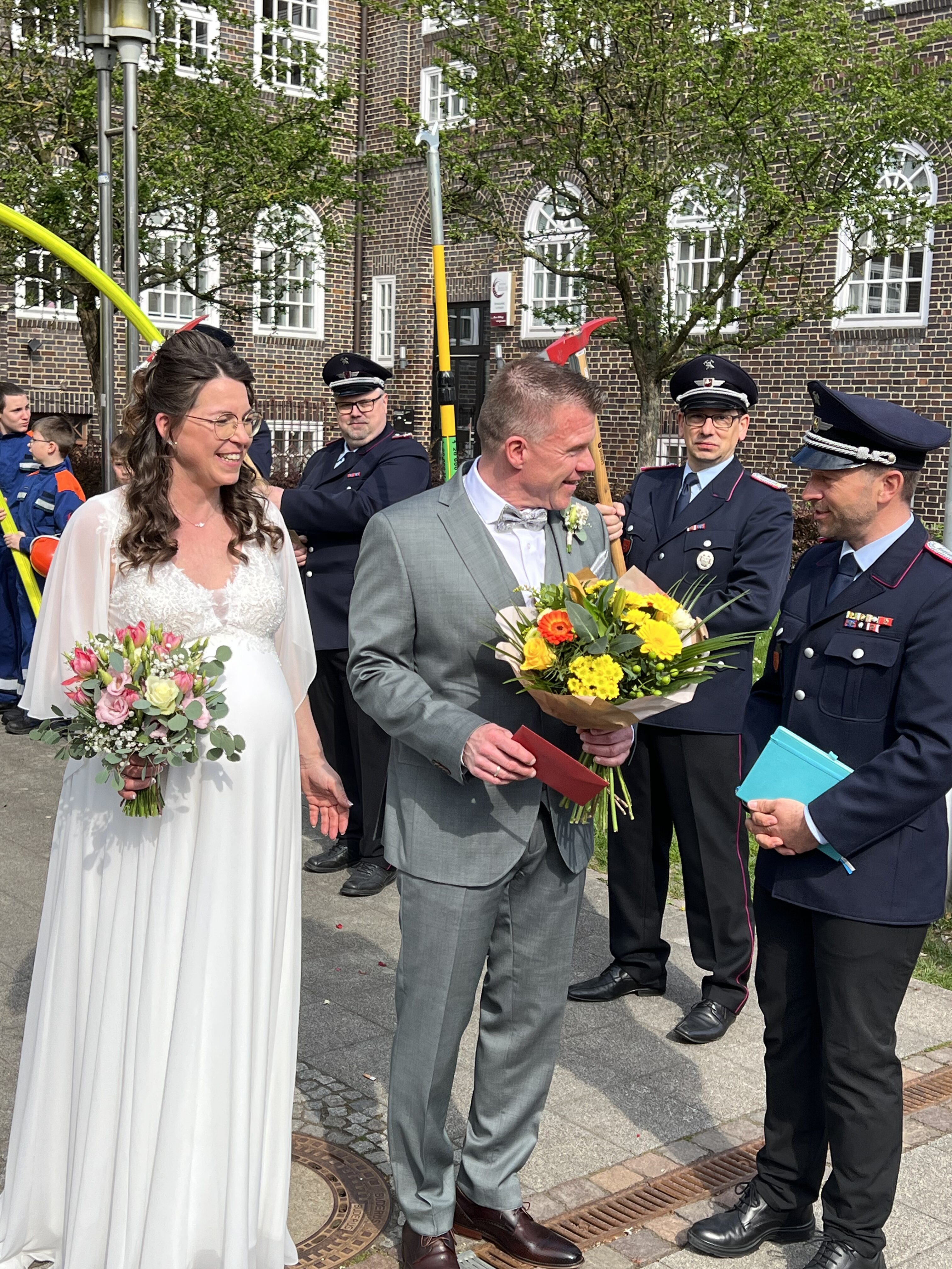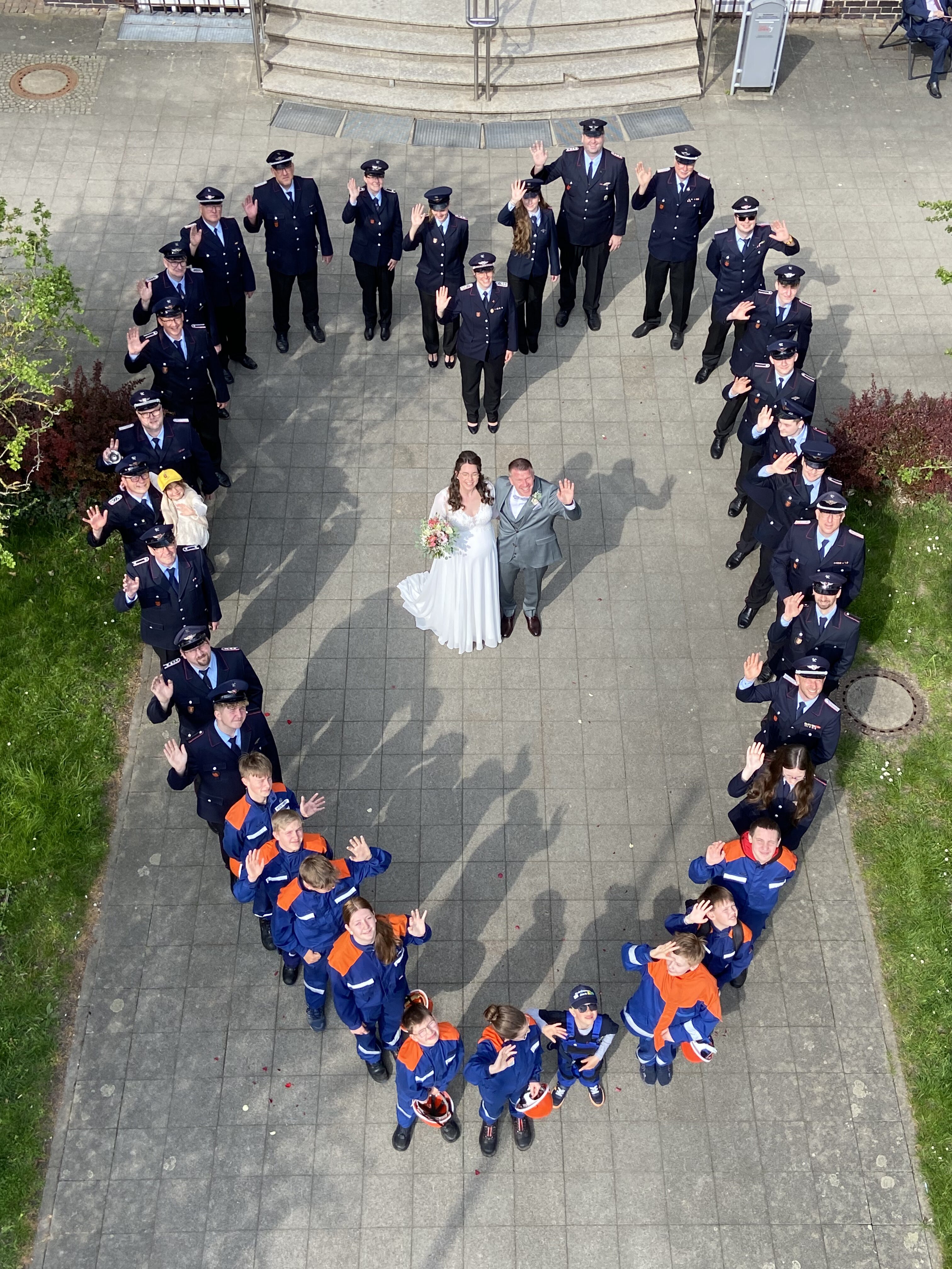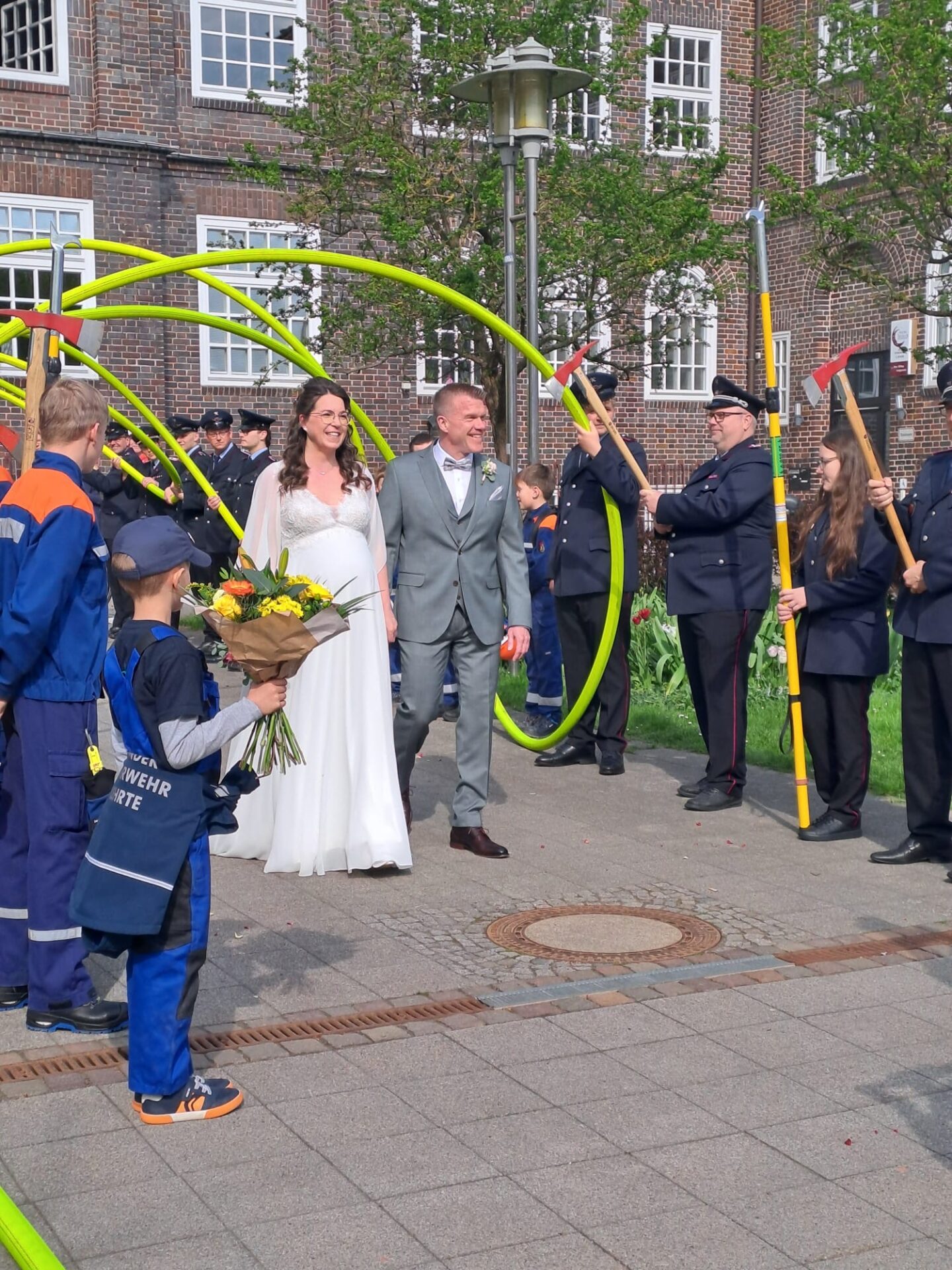 Wie es sich bei der Feuerwehr gehört, standen auch bei dieser Trauung die Mitglieder der Ortsfeuerwehr Spalier.