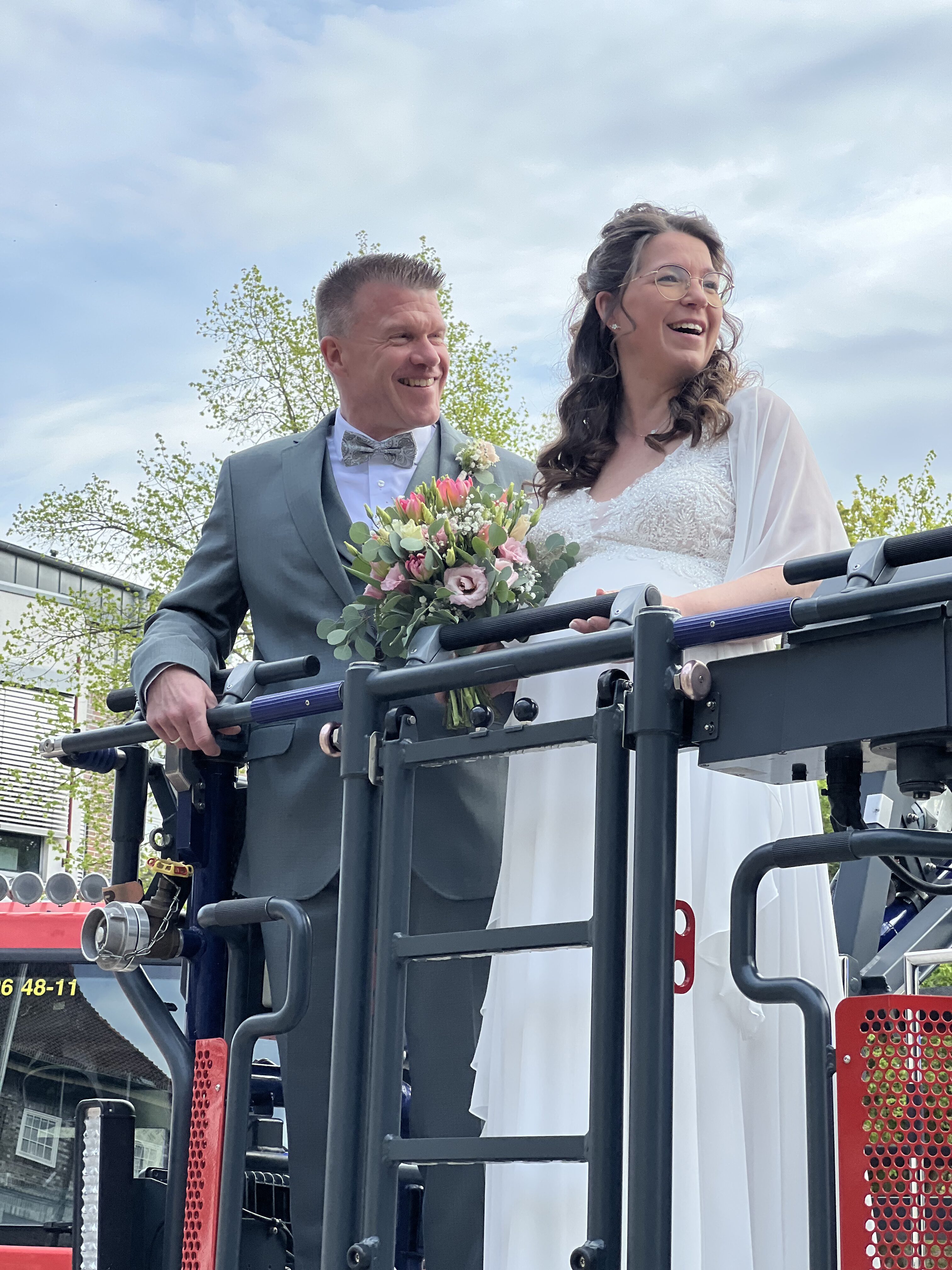 Im Anschluss durften unser Ortsbrandmeister und seine Ehefrau sich mittels Drehleiter in die Lüfte erheben.